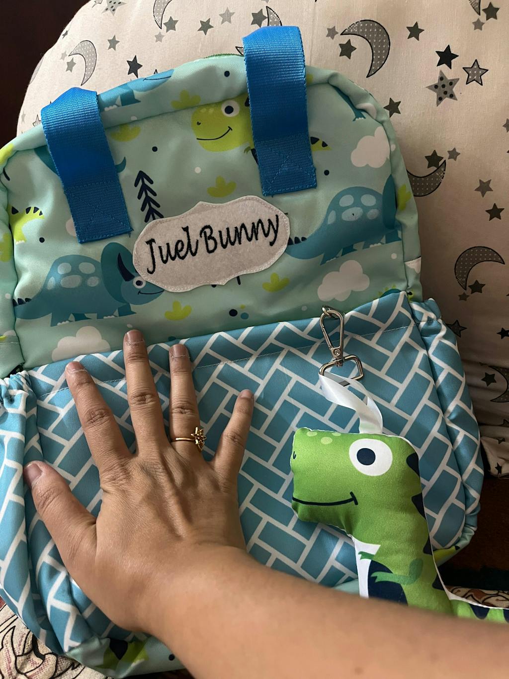Unveiling our latest creations for little explorers! Our new children’s backpack comes with one large and one smaller compartment, two water bottle pockets, cushioned straps, load-bearing hooks, and waterproof material. Each lightweight school backpack also features a charming soft toy accessory and custom name personalization, making it truly unique!