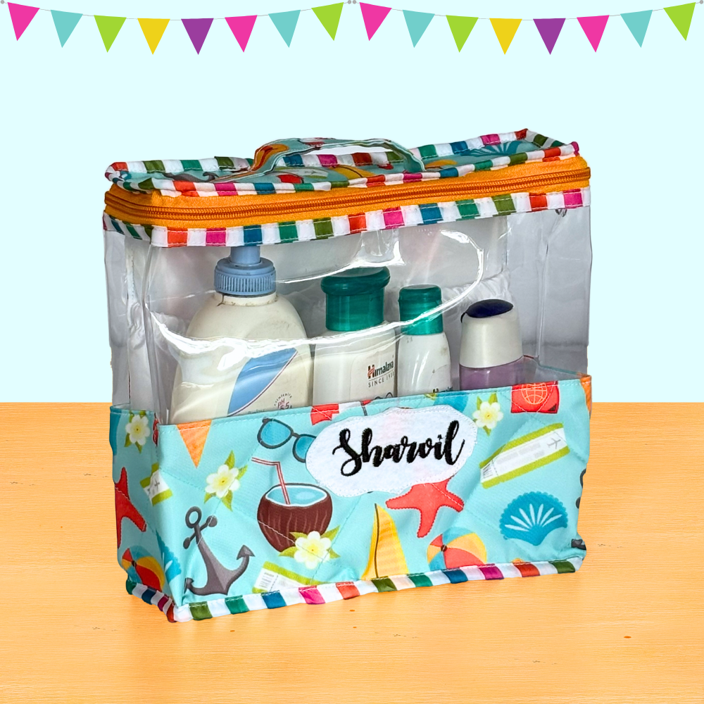 Make everything easy to find and access on the go with our peekaboo travel organizer! Perfectly sized for kids’ toiletries, this transparent travel pouch features a clear front so you can quickly spot each item. Its vertical design helps prevent leaks, and the waterproof travel organizer fabric keeps contents safe and dry.