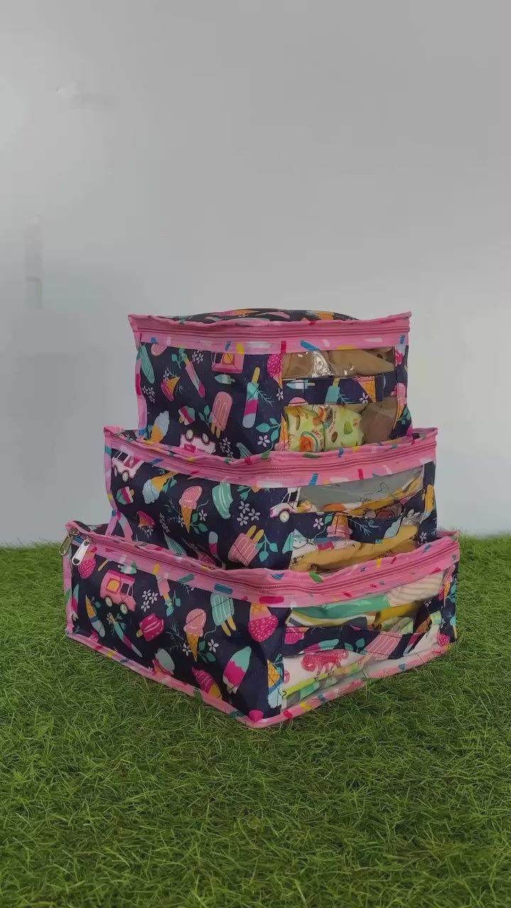 Tiny Treasures Sorted: With large, medium, and small cubie bags, this multi-pocket travel organizer keeps clothes, toys, snacks, and tiny treasures neatly stored. Each pouch is crafted for easy access, helping kids learn simple packing habits while keeping everything in its place.
